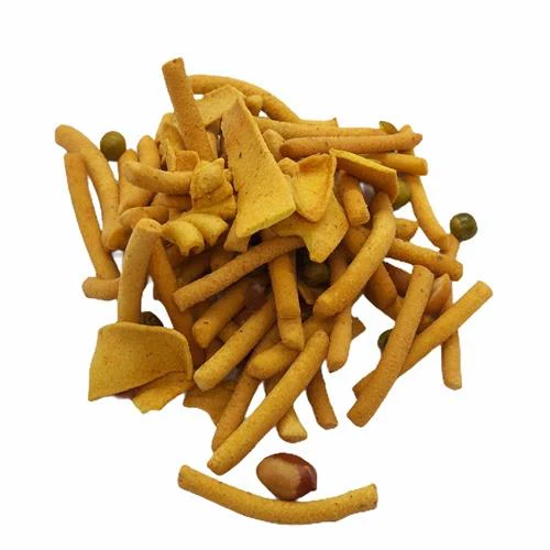 Ingredients: Pea flour, peanuts, peas (colour E102, E133), vegetable oil, spices, salt. May contain sesame seed and nut traces. MSG Free. Pea flour noodles & chips – 70%, oil, salt and colour added. Peas – 15% – oil, salt and colour added. Peanuts – 15% – oil, salt no colour. All colour added before cooking.